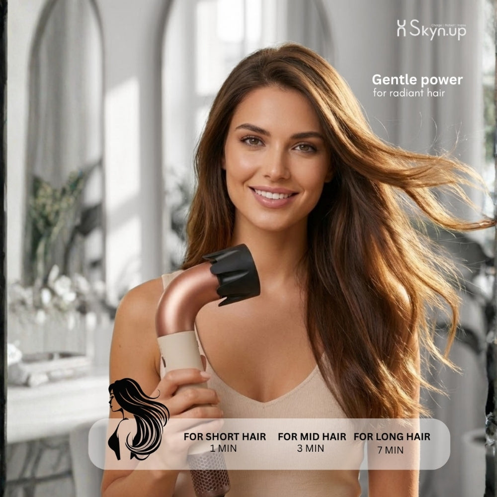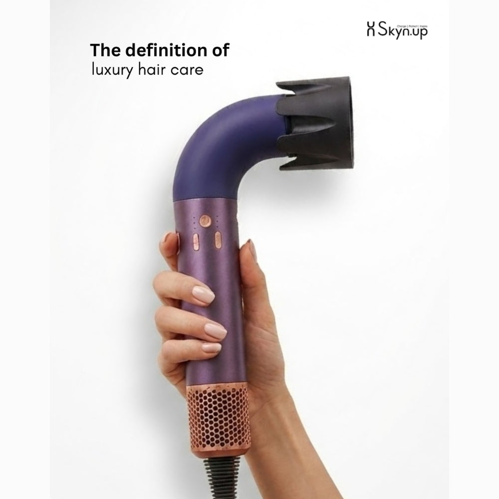 Skynup Pixel 1600 Watt Ionic Hair Dryer Experience salon-quality drying with the Pixel professional ionic hair dryer. Engineered with advanced technology and intuitive controls, this powerful yet quiet blow dryer delivers exceptional results for all hair types. Key Features: 1600W Power: High-performance motor dries hair quickly and efficiently Touch Screen Control: Easy-to-use digital interface for precise settings 360° Magnetic Rotating Nozzle: Convenient attachment adjustment for versatile styling 3 Heat + 3 Wind Speed Modes: Customizable combinations for perfect drying results every time Negative Ion Technology: Reduces frizz and enhances shine for smoother, healthier-looking hair Hot & Cold Air Function: Cool shot seals the cuticle and sets your style Quiet Operation: Professional-grade noise reduction for a more pleasant experience Transform your hair drying routine with intelligent features designed for both everyday use and professional styling. Whether you're blow-drying straight, waves, or curls, the Pixel delivers consistent, beautiful results with minimal frizz and maximum shine.