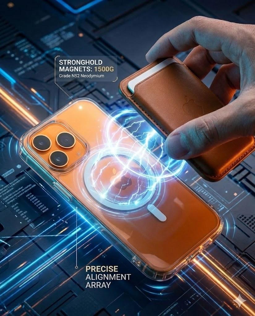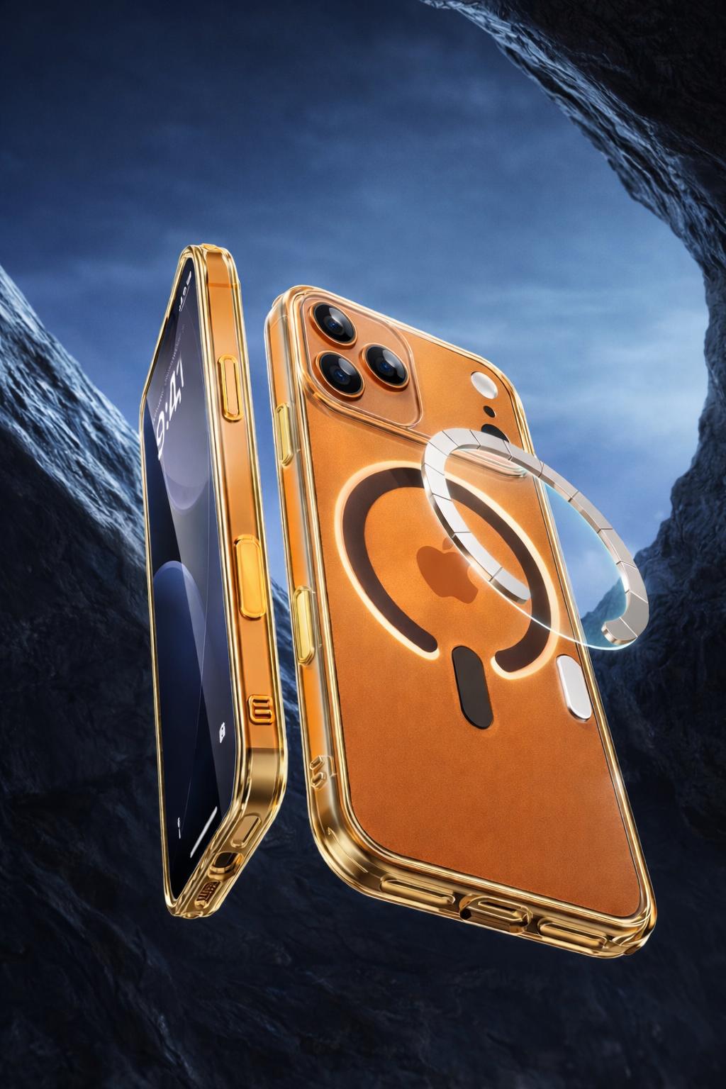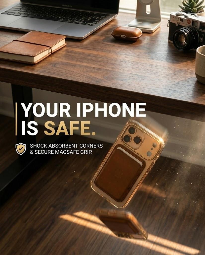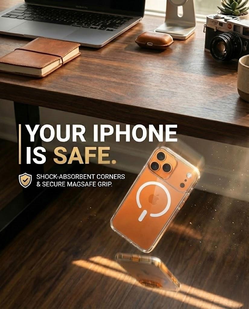 TThe Skynup Arto Collection Champagne Gold MagSafe Case for iPhone 17 Pro represents the pinnacle of protective design, seamlessly merging transparent clarity with understated luxury. Constructed from premium crystal-clear polycarbonate, this designer case preserves your device's original aesthetic while allowing its sophisticated engineering to remain fully visible. The refined champagne gold accents provide a touch of elegance without compromising the minimalist design philosophy. Integrated MagSafe technology ensures effortless compatibility with a comprehensive ecosystem of magnetic accessories, from wallet attachments to car mounts and charging solutions. The precision-engineered frame absorbs impact effectively, safeguarding against daily scratches, scuffs, and minor drops while maintaining structural integrity. Its slim, lightweight profile eliminates bulk, preserving your iPhone's natural contours and ensuring comfortable handling. Engineered for discerning professionals and users who refuse to compromise between protection and aesthetics, this case transforms your device into a refined accessory. Whether navigating office environments, traveling, or managing daily responsibilities, the Arto Collection delivers dependable defense without sacrificing the premium appearance your investment deserves.