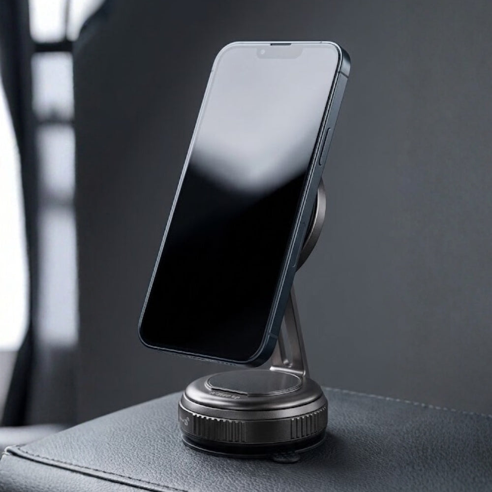 Built with precision engineering, the Skynup Magnetic Mount combines heavy-duty vacuum suction technology with an advanced Twist-to-Lock fastening system, delivering unwavering stability across dashboards, windshields, and office environments. The premium magnetic interface facilitates seamless phone positioning with virtually no drift, even under rigorous driving scenarios and challenging road conditions. Featuring comprehensive 360° articulation, it transitions effortlessly between portrait and landscape modes to suit your viewing preferences. The fortified suction base withstands continuous vibration and mechanical stress while maintaining superior adhesion. Purpose-built for business professionals and road-frequent users, this mounting solution establishes your device as a dependable navigation and communication center without obstructing visibility or compromising operational safety. The premium designer construction balances robust protection with refined aesthetics in a streamlined form factor.